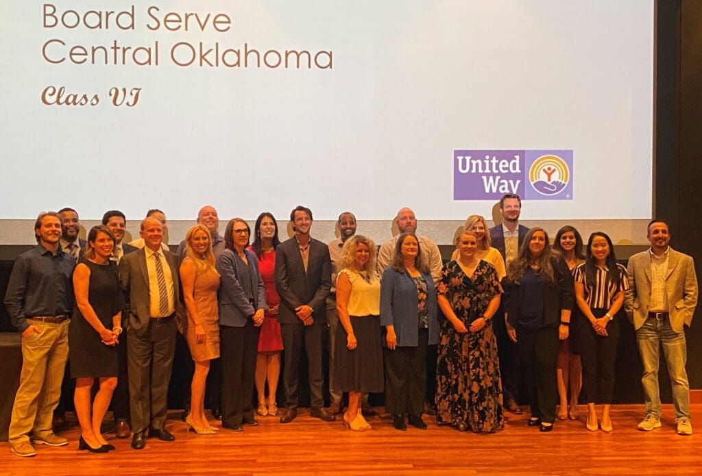 Led by United Way of Central Oklahoma President and CEO Debby Hampton and Foundation Management President Frank Merrick, Board Serve provides professional training in a wide range of topics and skills needed to serve on a nonprofit board. The 26 graduates took part in an eight-month program that featured industry professionals and subject matter experts in nonprofit board governance, leadership skills, nonprofit law, fundraising, crisis management and other critical skills.